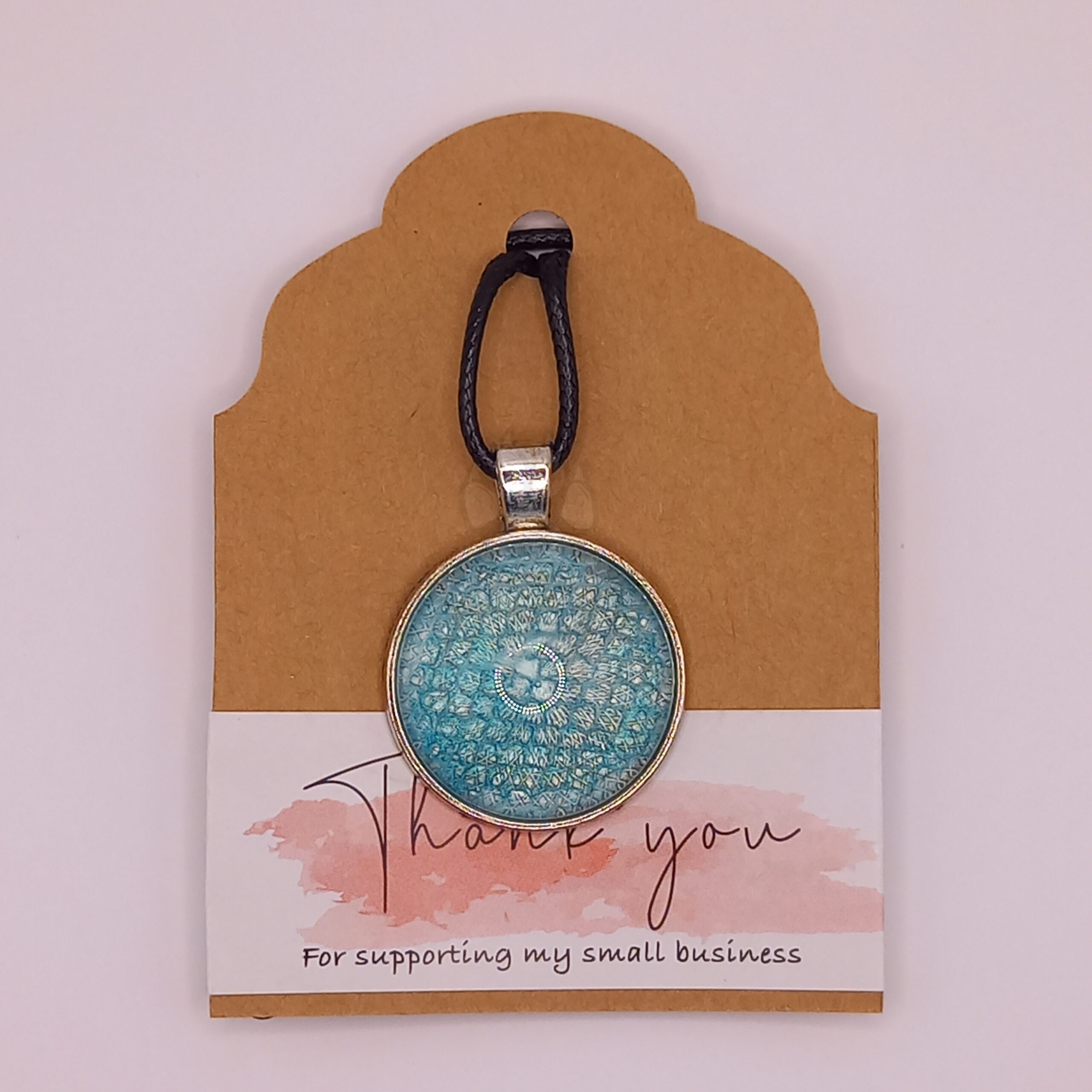 Silver base pendant, transparent blue shimmer.